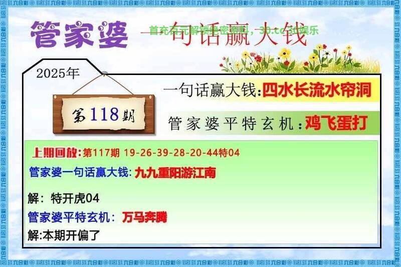 118期:管家婆一句话赢大钱:【四水长流水帘洞】 解释:四水长流水帘洞,解四头特码40-49,解水肖鼠猪 特肖:龙兔牛鸡羊猪 ![]() |